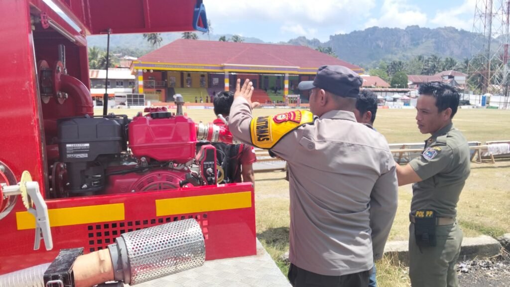 narasibijak.com, Enrekang – Polsek Alla bersama Dinas Pemadam Kebakaran (Damkar) melaksanakan kegiatan simulasi penggunaan mobil pemadam kebakaran sebagai upaya meningkatkan kesiapsiagaan dalam penanganan bencana kebakaran. Kegiatan ini berlangsung di Lapangan Sepak Bola Belajen, Kelurahan Kambiolangi, Kecamatan Alla, Kabupaten Enrekang.