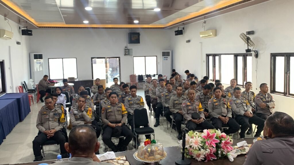 1. Kasi Propam AKP Bahri memberikan materi terkait pentingnya menjaga disiplin, tidak melakukan pelanggaran, serta memastikan kesiapan dan kelengkapan personel dalam pelaksanaan tugas di lapangan.